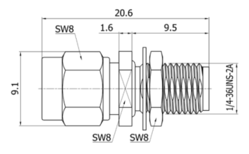 Inner conductor: Beryllium Bronze Gold C17300, Golden Plated