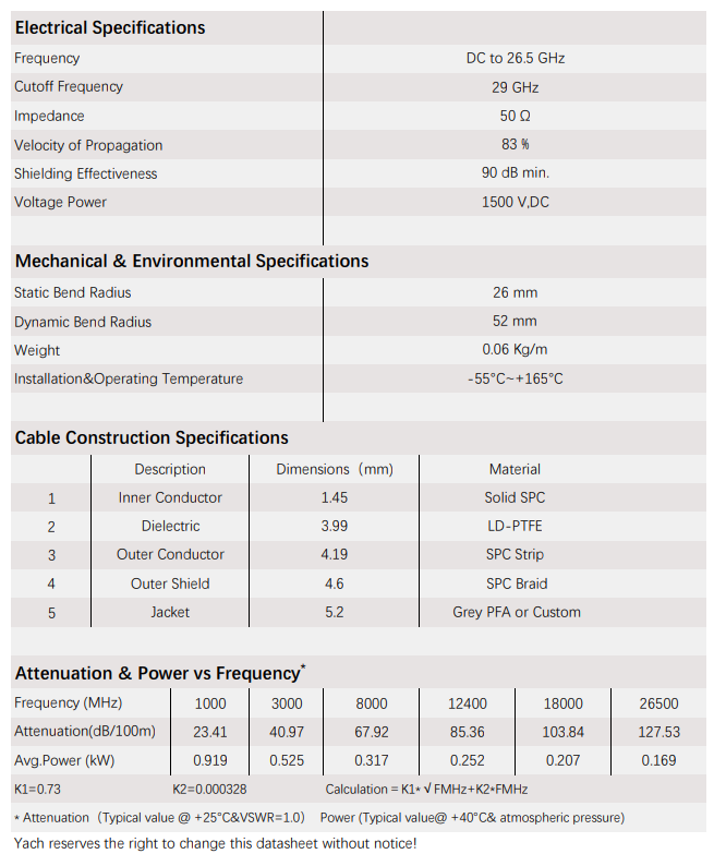 High Power & Low Loss Cable
