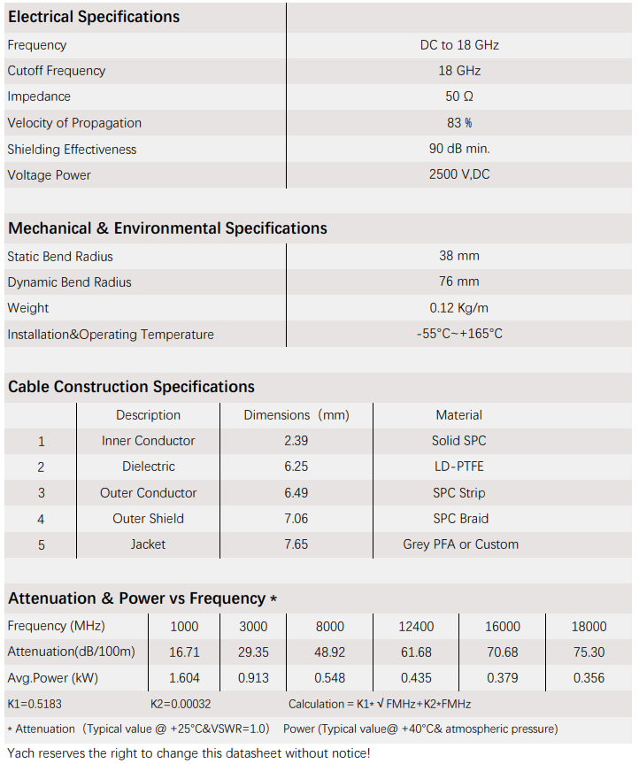 High Power & Low Loss Cable